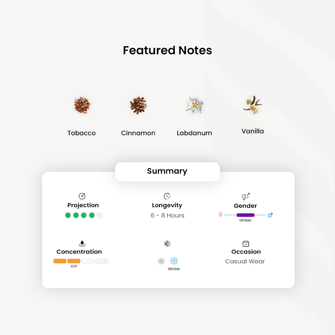 Tobacco • Spicy • SweetWhere smoke meets sweetness, and power wears velvet