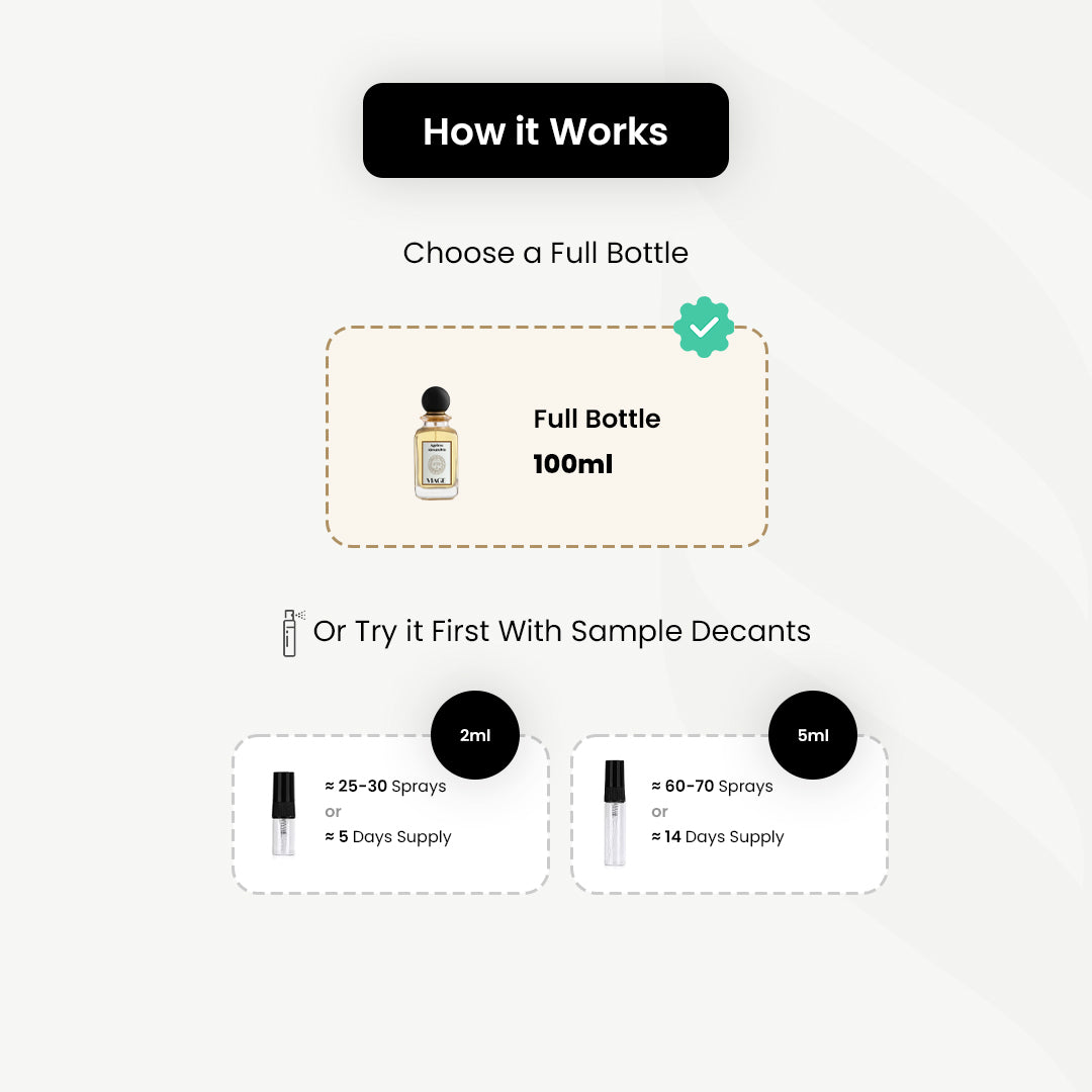As fragrance lovers we know that we want to get the most out of each sample, starting from the 2ml samples which will give you on average ~5 Wears, 5ml ~12 Wears and 10ml ~24 Wears, those numbers are taking into account around 5 sprays per wear.